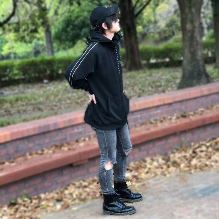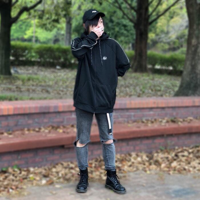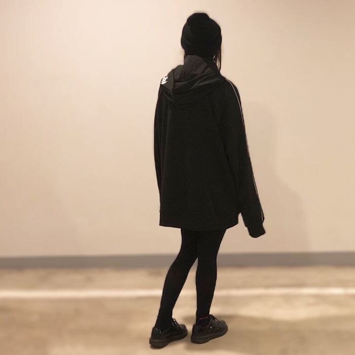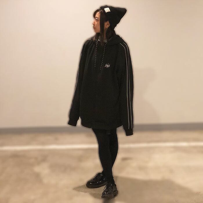 シルエットは比較的ルーズなものなので、スキニー等の細めのパンツや、