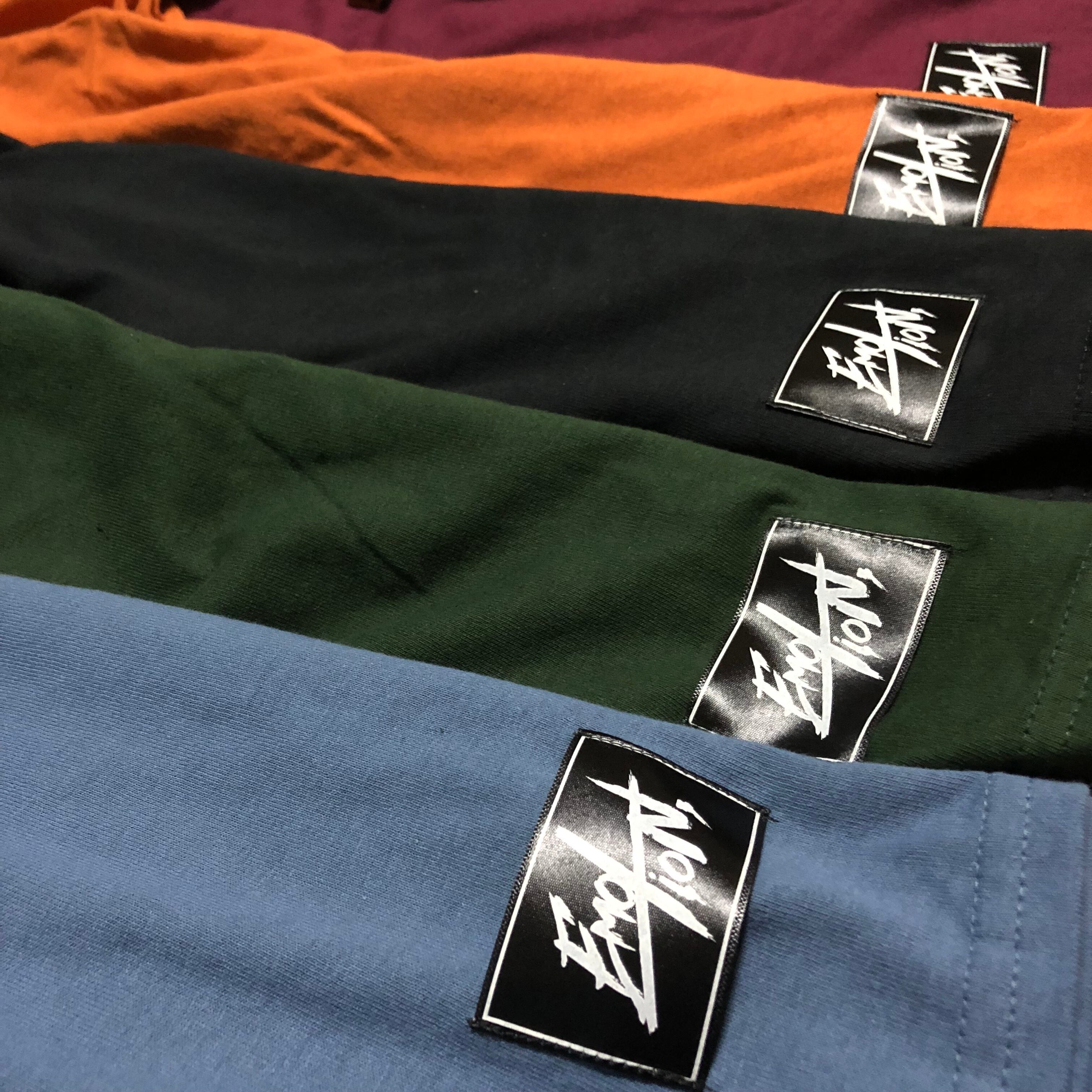 フロントはシンプルなデザインのプリントに、右裾部分には、メインロゴのタグを縫い付けました。